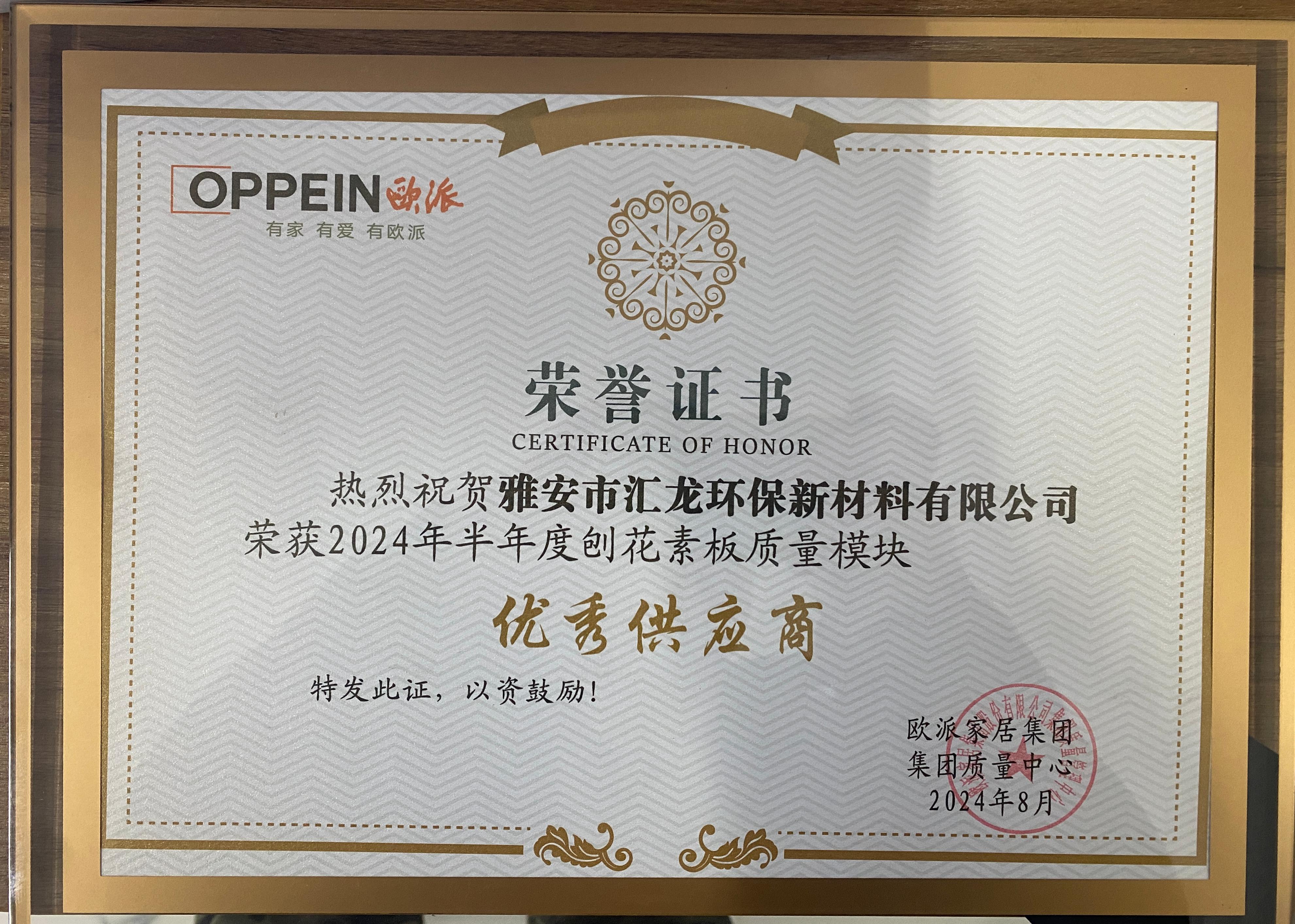 歐派家居集團(tuán)優(yōu)秀供應(yīng)商